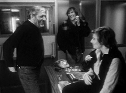 Naturally, what goes for the staging in Pialat goes also for the camera, and for what filmmakers call the ‘blocking’ of the scene: who goes where and when in a shot, and how will the recording apparatuses of vision and sound capture it live on the set or on location? One index of this entire process stands out in Pialat: the way he treats the co-existence in a shot or a scene of sitting and standing. This is, once again, normally something so ‘naturalised’, so smooth and flowing, that we rarely or never notice or ponder it in cinema. But it rates among the greatest pitfalls of filmmaking for every beginning, hopeful practitioner: once you have one character who stands and another who sits, together, at any point or stage of a scene, you have a potentially disastrous gaping dissymmetry that demands enormous attention. Attention to set design, to composition, to the choreography of the actors. How do you angle it, transition it, balance it? ‘Amateurish’ films advertise themselves as such through their inability to handle this very real problem of cinema craft. Great classical masters — such as Douglas Sirk and Otto Preminger — based their entire style on constantly working with and varying the dramatic dissymmetry between sitting and standing figures, always using such pictorial imbalance in the frame to arrive, dynamically, at an overall rhythm, form and balance. Others (Godard, Akerman) attacked the matter in their own, eccentric ways.