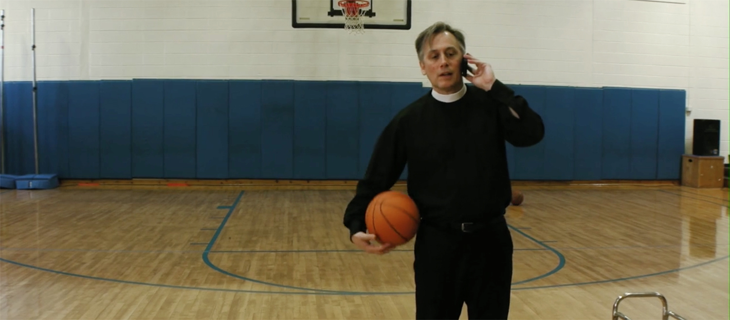 "Temperature" as a slip for "Temptation" in this, the comic-dramatic crucible of the Sequence shorts, wherein Father Martin (David Aaron Baker, perfectly calibrating the character to every encounter), an Episcopal priest, hosts a dinner party for a group of friends on the occasion of dispersing the cremated ashes of deceased Robert. Father Martin chatting on his cell with his mother and father while practicing one-hand free-throws on the church basketball court (a single three- or four-minute shot with the camera craning from on high earthward before closing in on the character). Audio Japanese lessons in the car back from the liquor store before a suburban gang eggs the windshield. ("Pussy.") Swing between drunken emotions, reminiscences of the priest's and guests' dead friend, a chanced kiss, and a spine-tingling final shot.